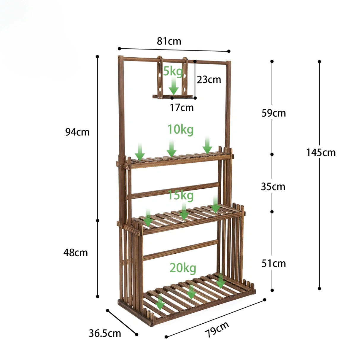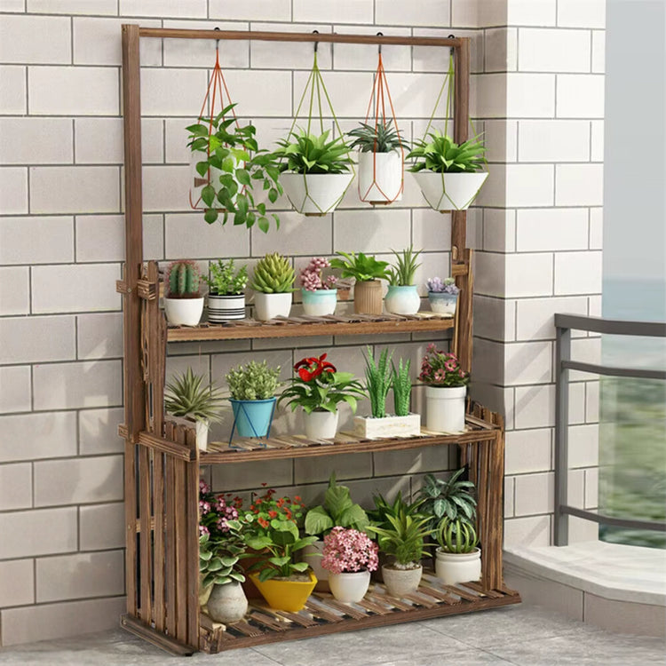 Plantehylde i Træ til Indendørs og Udendørs Brug – 3 Hylder med Hængestang